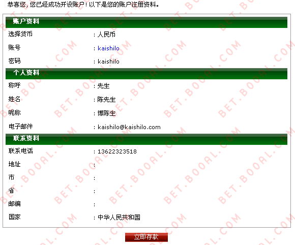 第五步:显示注册成功页面,并提示是否要马上存款。